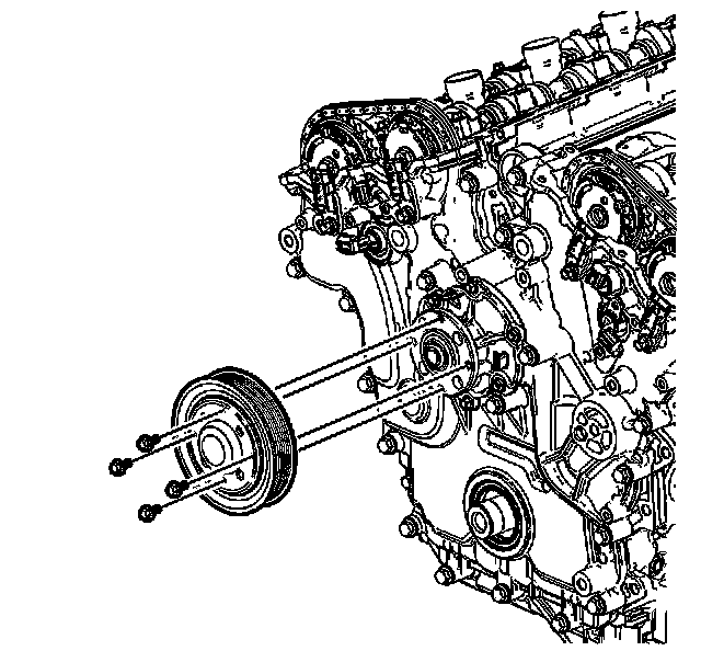 4. Remove the water pump pulley bolts.