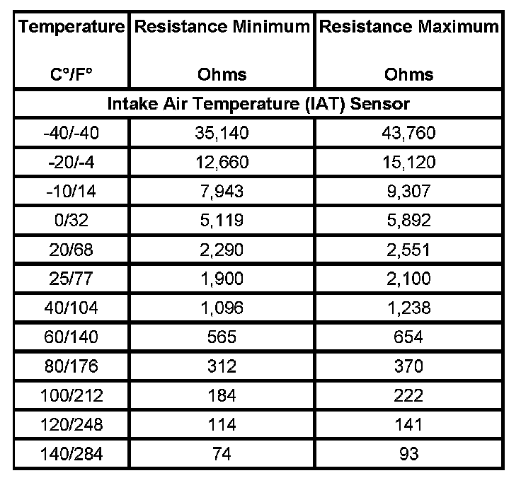 Temperature Versus Resistance - Intake Air Temperature Sensor