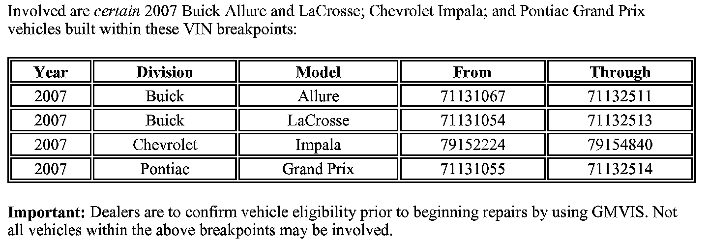 General Motors will notify customers of this recall on their vehicle (see copy of customer letter shown in this bulletin).