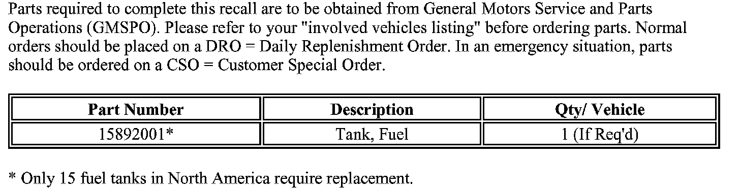 Recall - Fuel Tank Adhesive Layer Missing: Overview