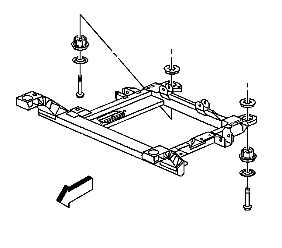 10. Install the nuts that secure the engine mount to the frame. Refer to Engine Front Mount Replacement in Engine Mechanical - 3.8L or Engine Mount Replacement - Right Side in Engine Mechanical - 3.6L.