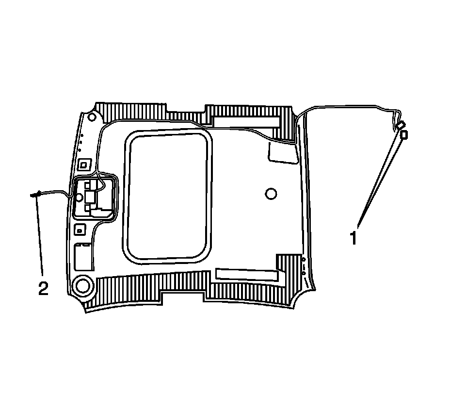 14. Remove the rear window trim panel as necessary to access the headliner harness connectors. Refer to Rear Window Shelf Trim Panel Replacement .