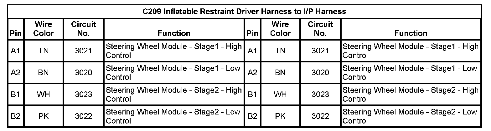 Inline Harness Connector End ViewsC209 Inflatable Restraint Driver Harness to I/P HarnessC209 Inflatable Restraint Driver Harness to I/P Harness: