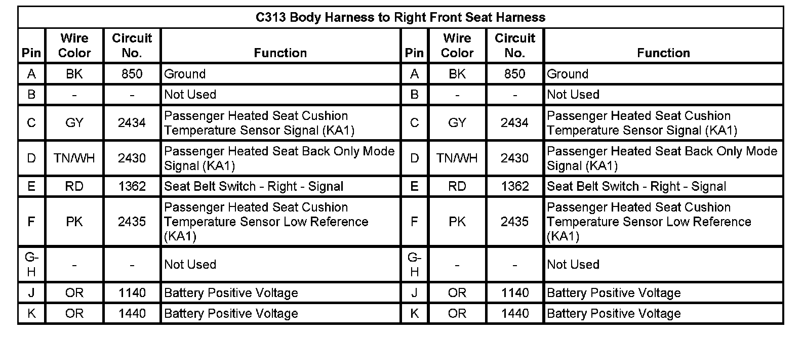 C313 Body Harness To Right Front Seat Harness (Pin A To K):