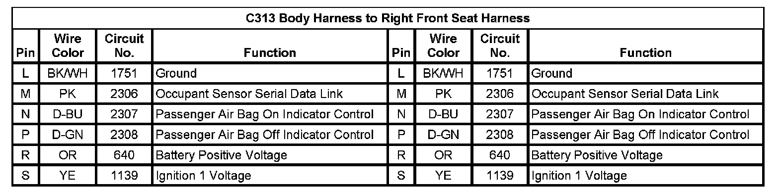 C313 Body Harness To Right Front Seat Harness (Pin L To S):