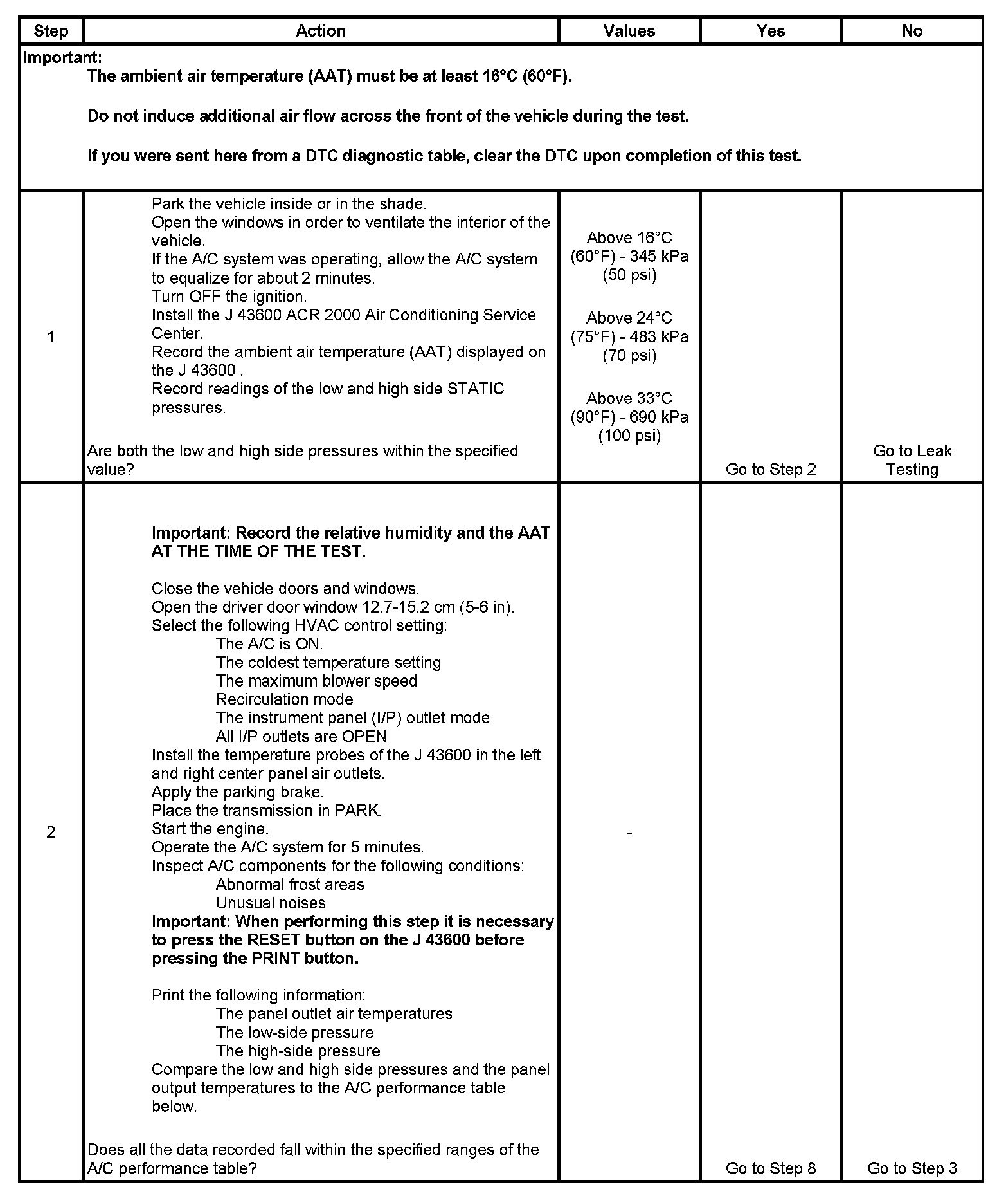 1. This step determines if the A/C system has at least the minimum refrigerant charge required to operate the system without damage.