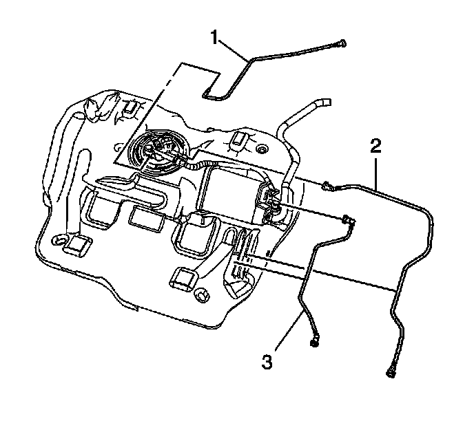 3. Install and connect the fuel feed line (3), and the EVAP lines (1, 2).