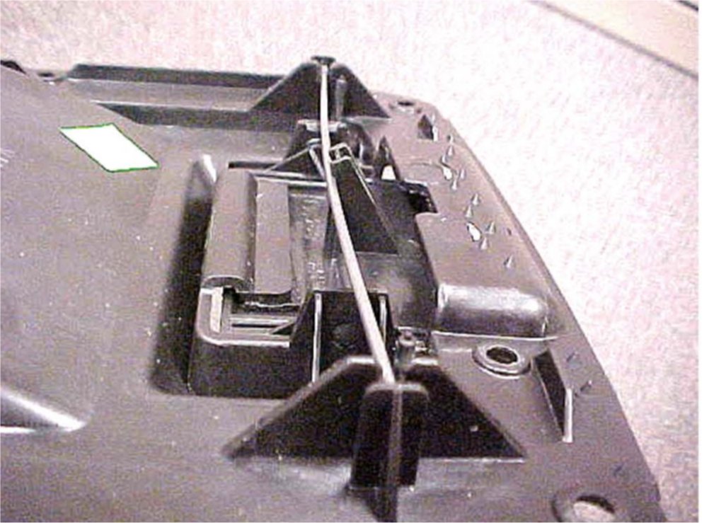 Place the spring into the mounts on either side of the liner and against the back side of the latch arm as shown in the illustration.