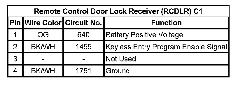 Remote Control Door Lock Receiver (RCDLR) C1
