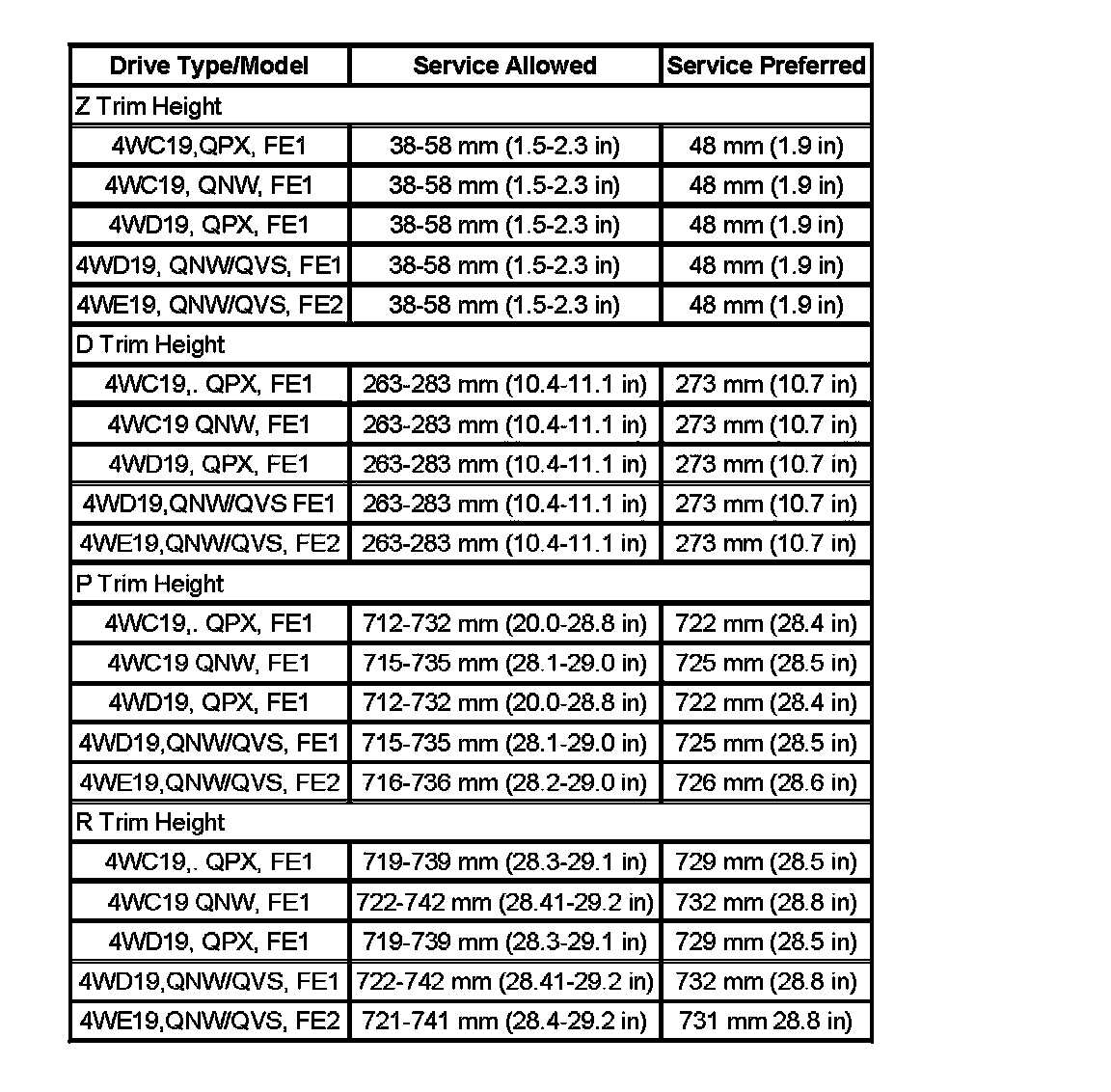 Trim Height Specifications: