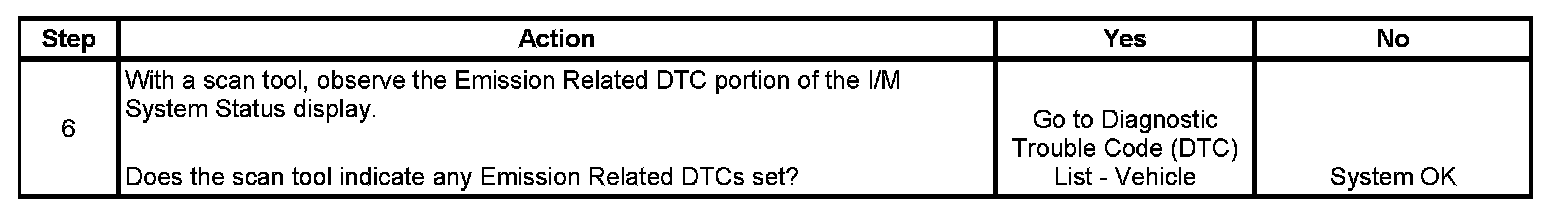 6. The I/M System Status only reports on whether or not a diagnostic has run, not what the outcome of the test was. If any emission related DTC sets after the tests are complete, the DTC will require diagnosis.