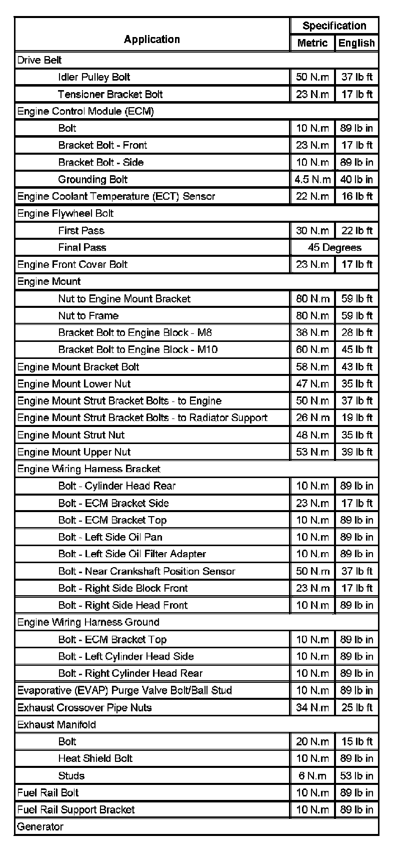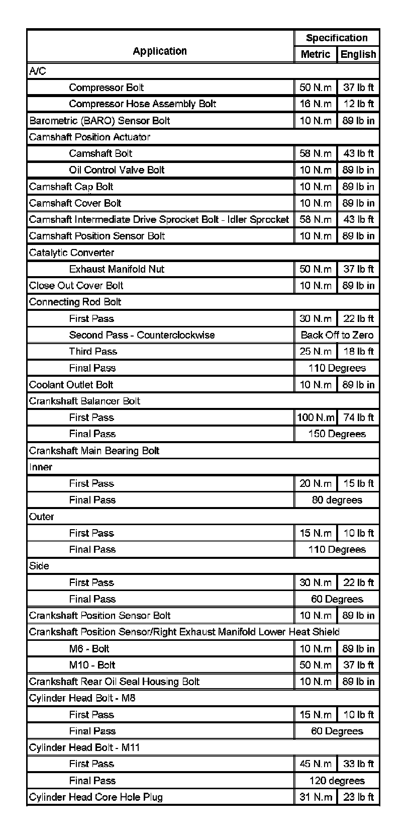 Fastener Tightening Specifications (Part 2):