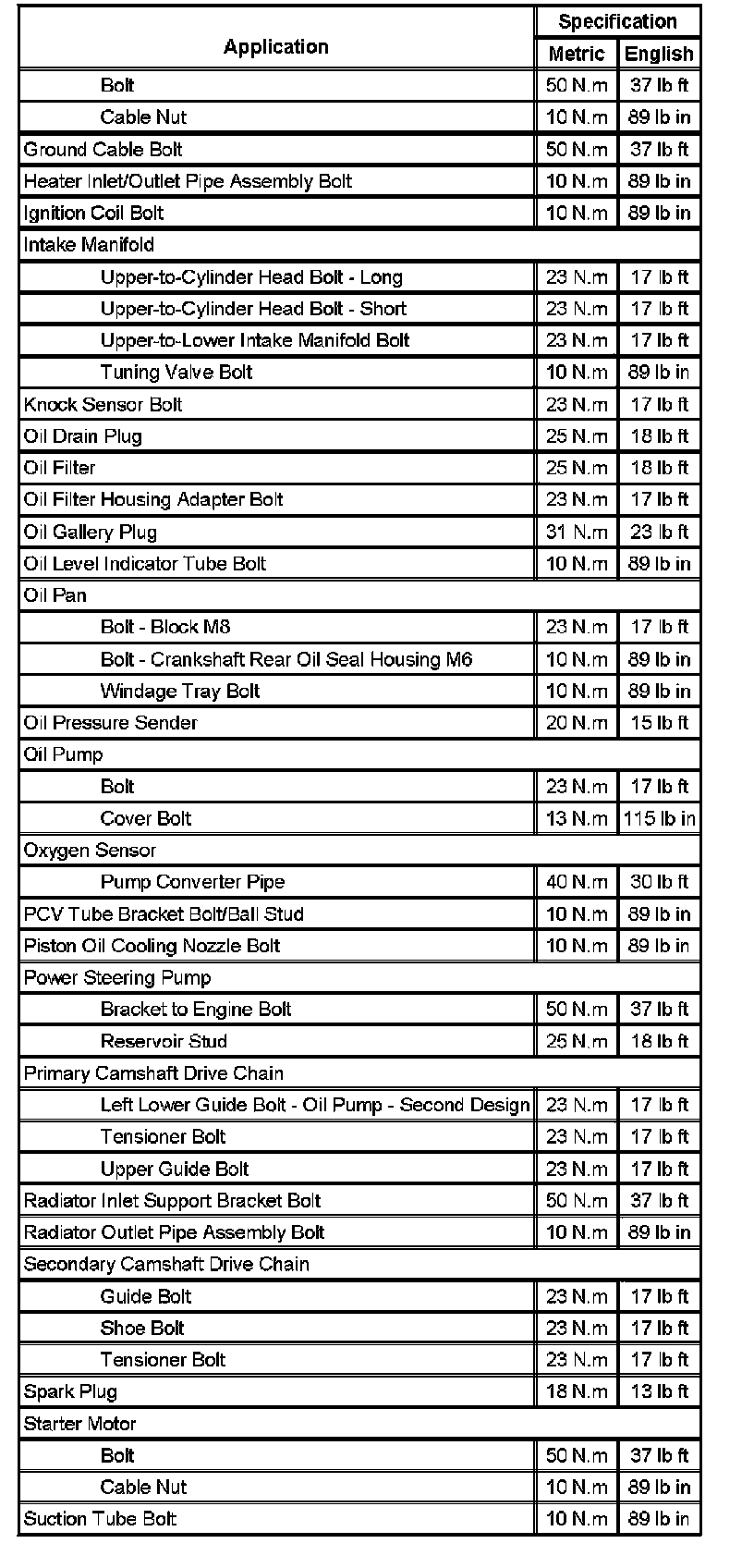 Fastener Tightening Specifications (Part 1):