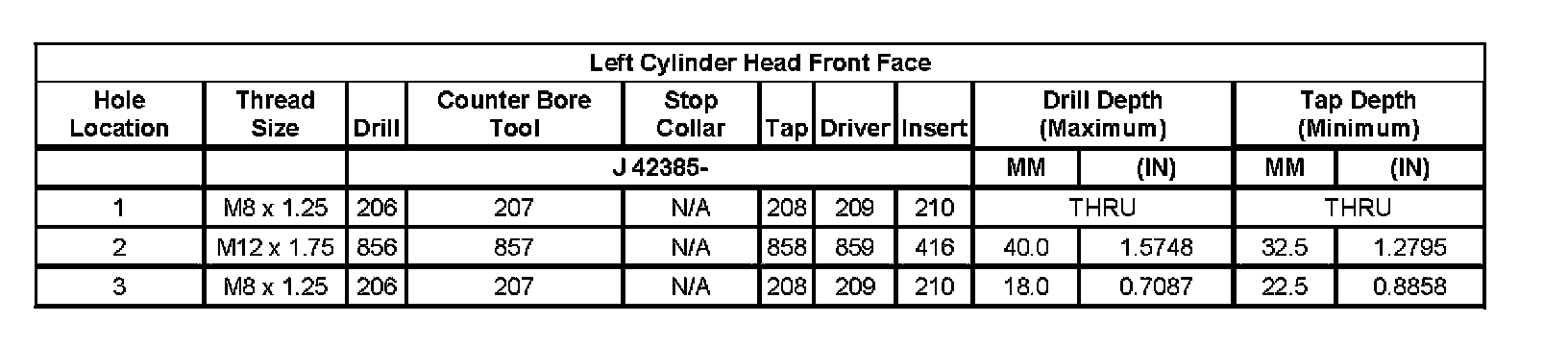 Left Cylinder Head Intake Face: