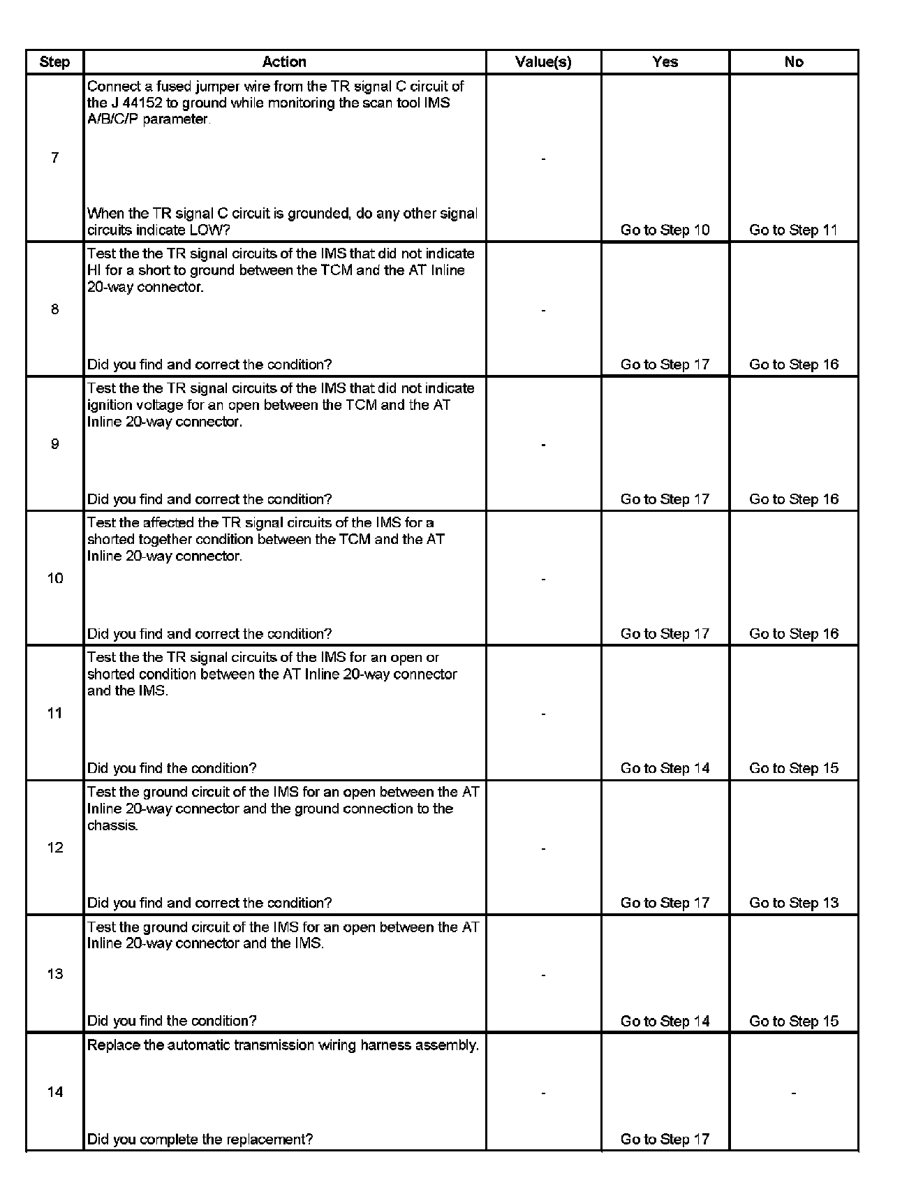 11. This step tests the internal transmission harness. If no fault is found in the harness, the fault will be in the switch.