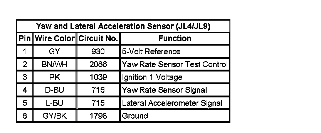 Yaw and Lateral Acceleration Sensor (JL4/JL9):