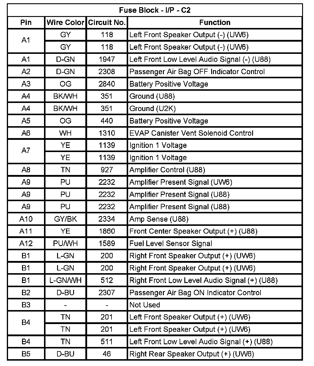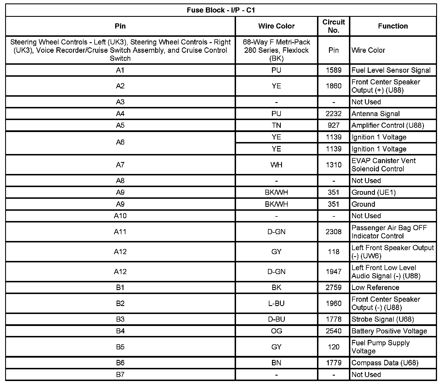 Fuse Block - I/P - C1 (Pin A1 To B7):