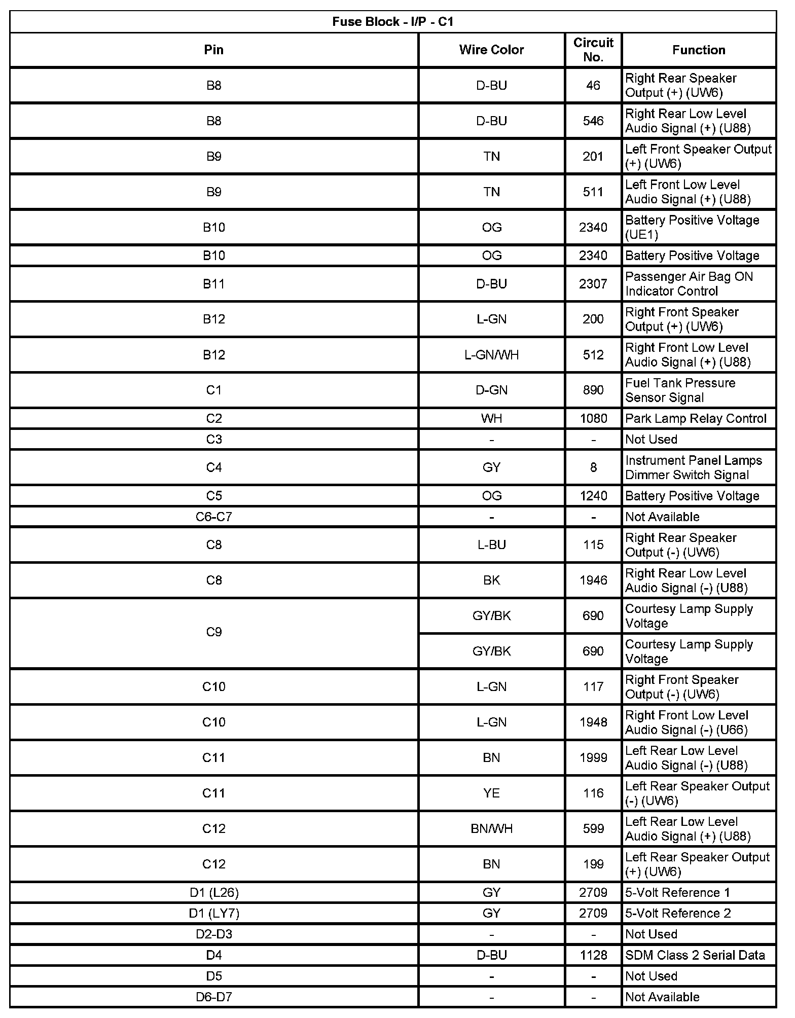 Fuse Block - I/P - C1 (Pin B8 To D7):