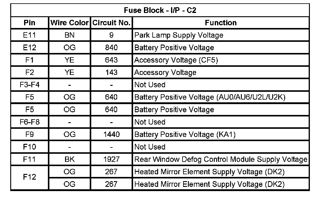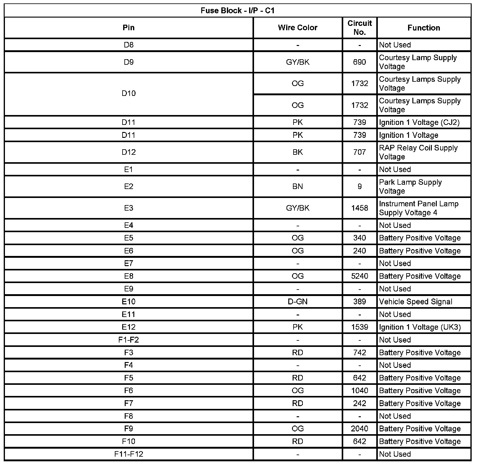Fuse Block - I/P - C1 (Pin D8 To F12):