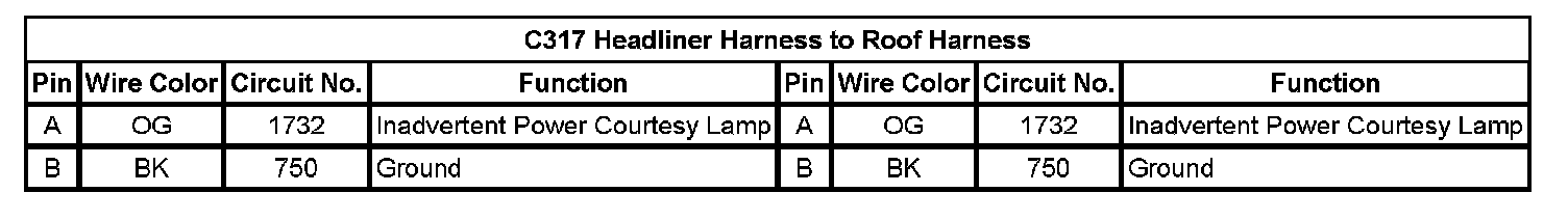 C317 Headliner Harness to Roof Harness: