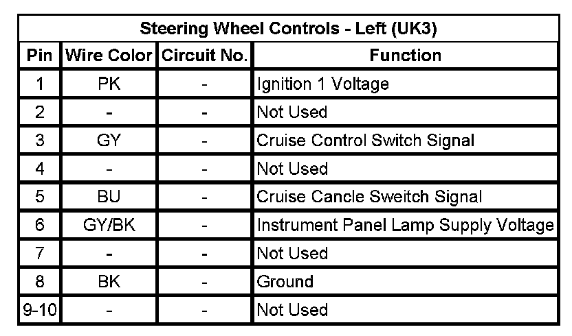 Steering Wheel Controls - Left (UK3)