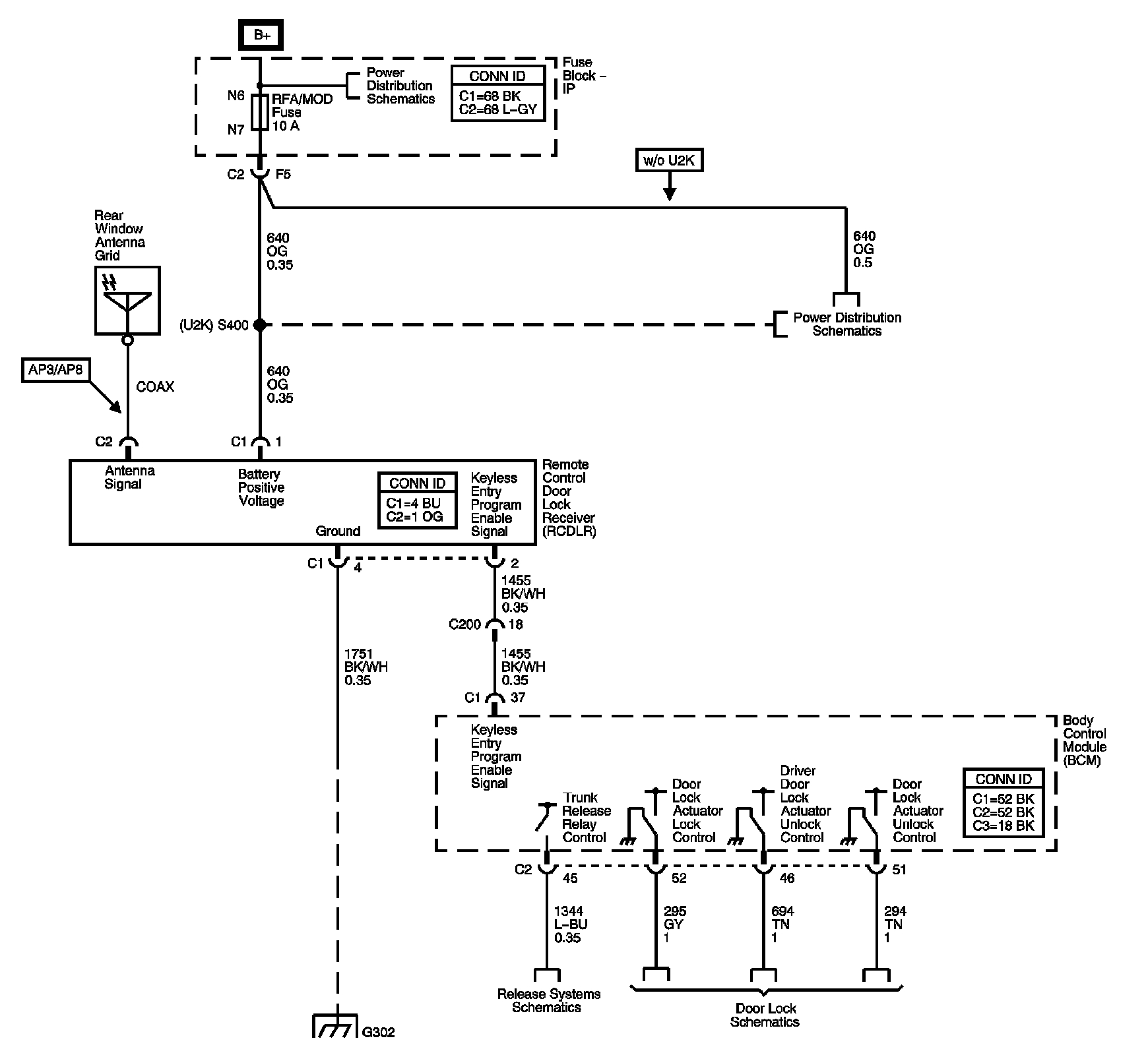 The locations for the Connectors, Grounds, Splices, and Grommets shown within these diagrams can be found via their numbers at Vehicle Locations.