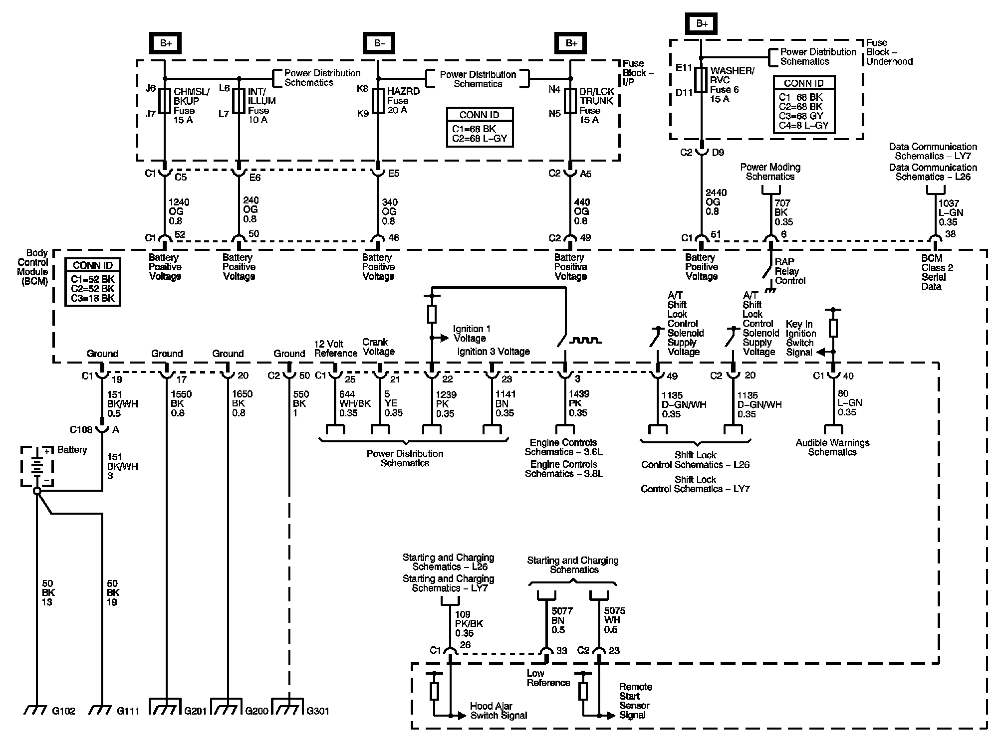 Power, Ground, A/T Shift Lock Control, Audible Warnings, DLC, Computers and Control Systems, RAP, Starting and Charging References