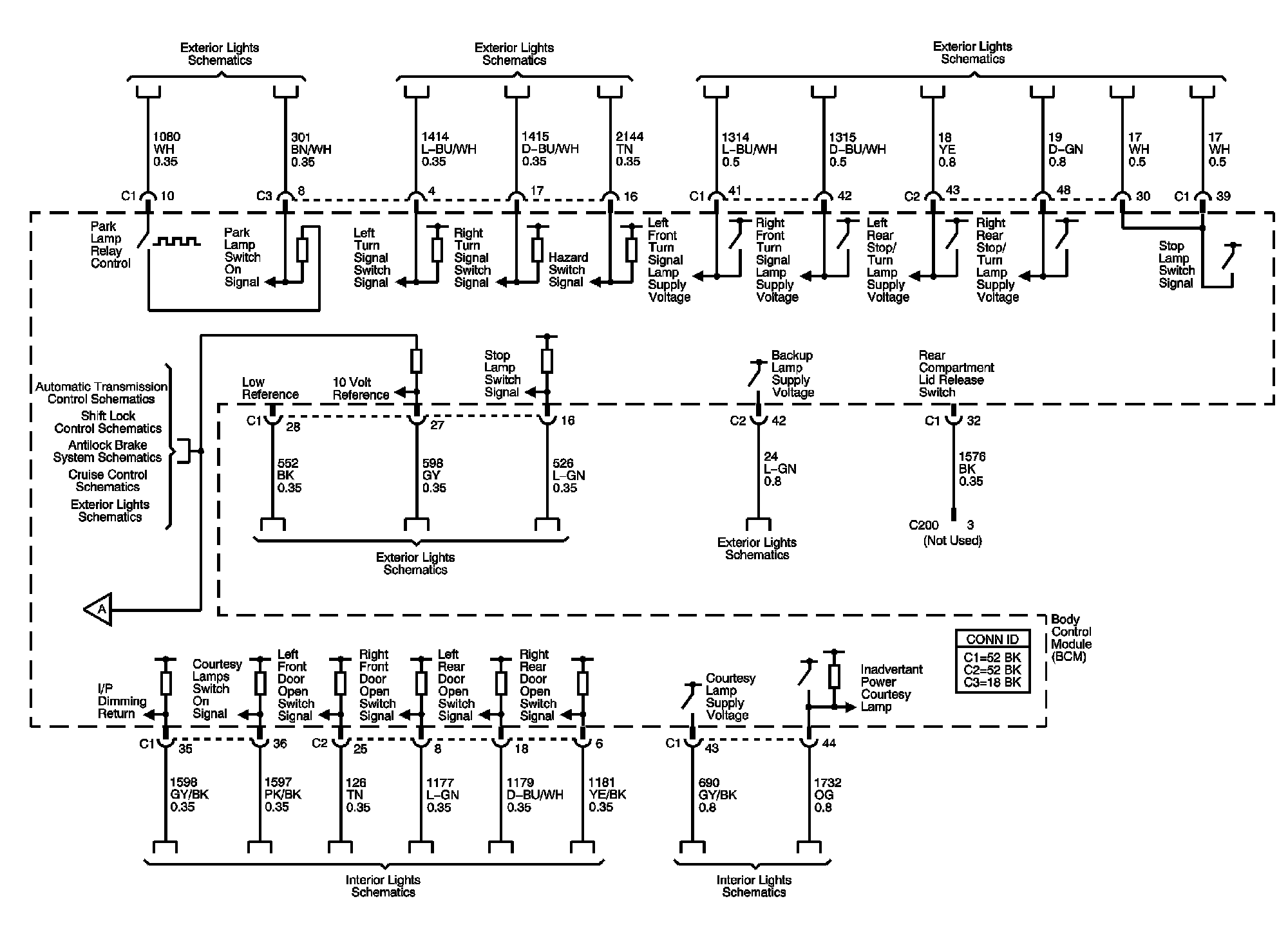 Door/Lock Indicator, Fog Lights, Headlights/DRL, Interior Lights, OnStar and Rear Parking Assist References