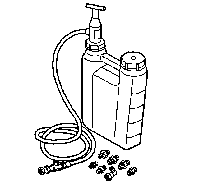 6. Pump the handle on J 45299 to flow a minimum of 1-2 quarts of engine oil. Observe the flow of engine oil through the flexible hose and into the engine assembly.