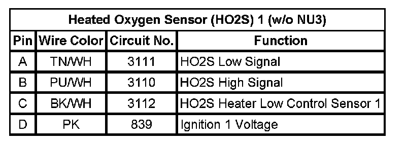 Heated Oxygen Sensor (HO2S) 1 (NU3)