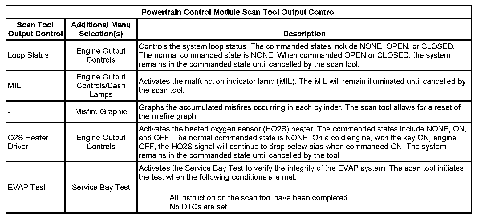 Scan Tool Output Controls