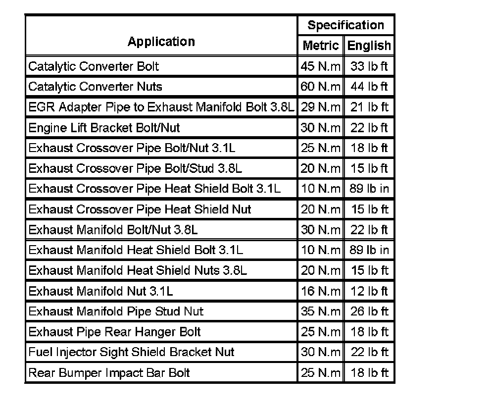 Fastener Tightening Specifications: