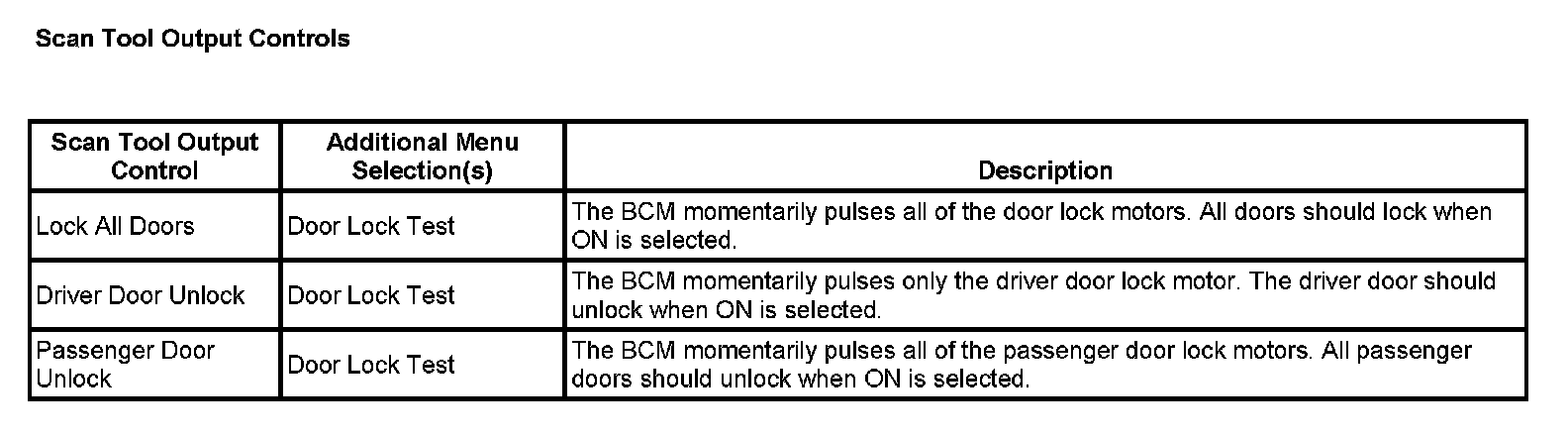 Scan Tool Output Controls: