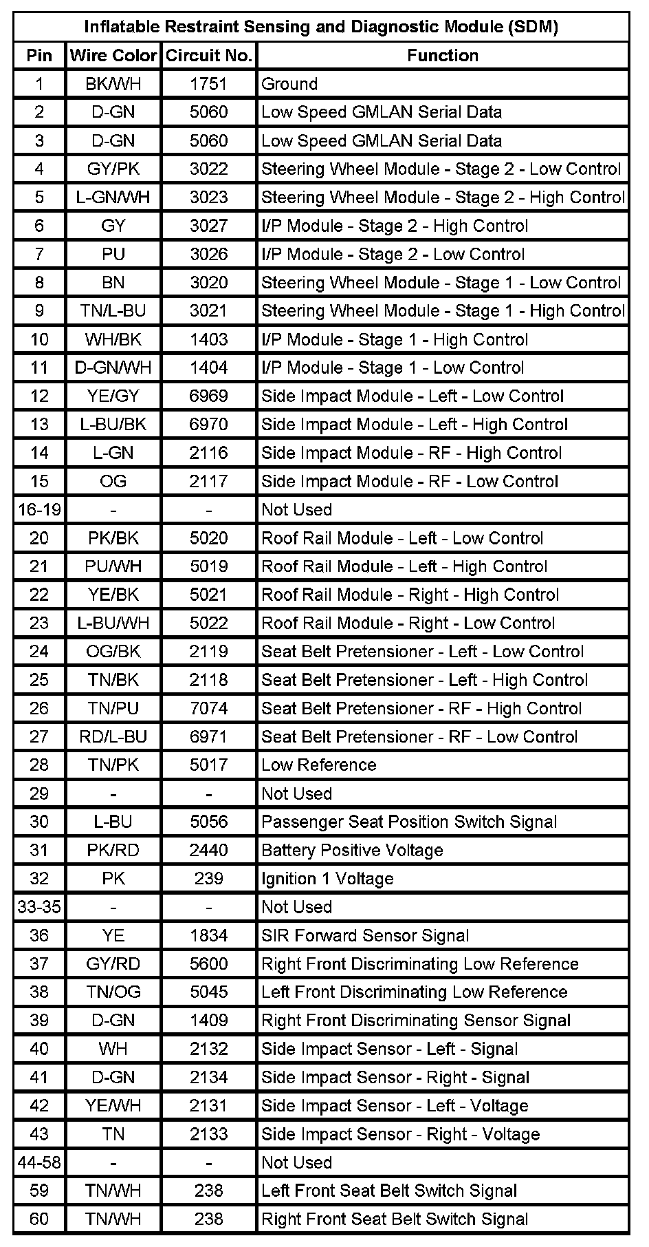 Inflatable Restraint Sensing and Diagnostic Module (SDM)