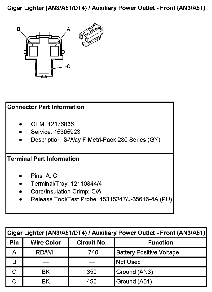 Cigar Lighter (With RPO Code AN3/A51/DT4) / Auxiliary Power Outlet - Front (With RPO Code AN3/A51):