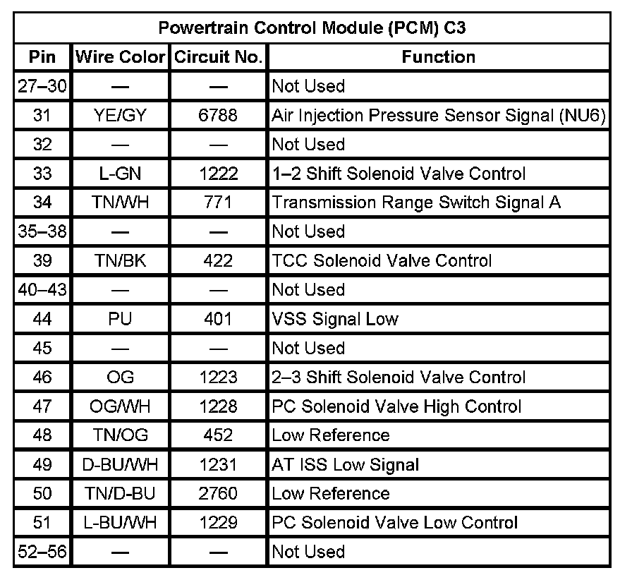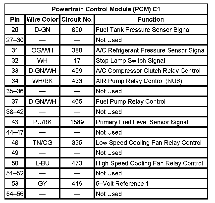 Powertrain Control Module (PCM) C1 (Pin 26 To 56):