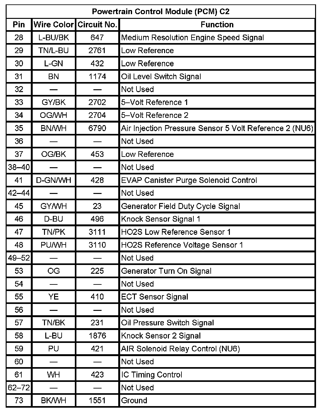 Powertrain Control Module (PCM) C2 (Pin 28 To 73):