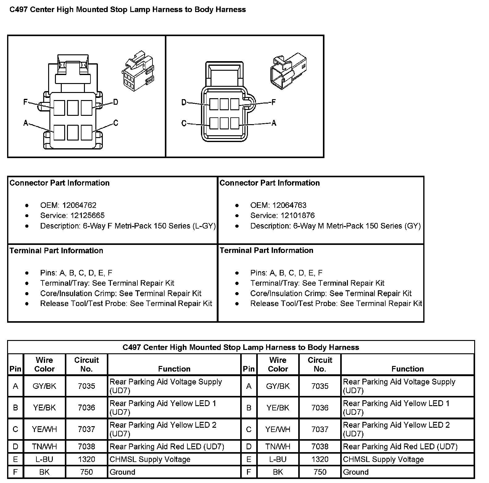 C497 Center High Mounted Stop Lamp Harness To Body Harness: