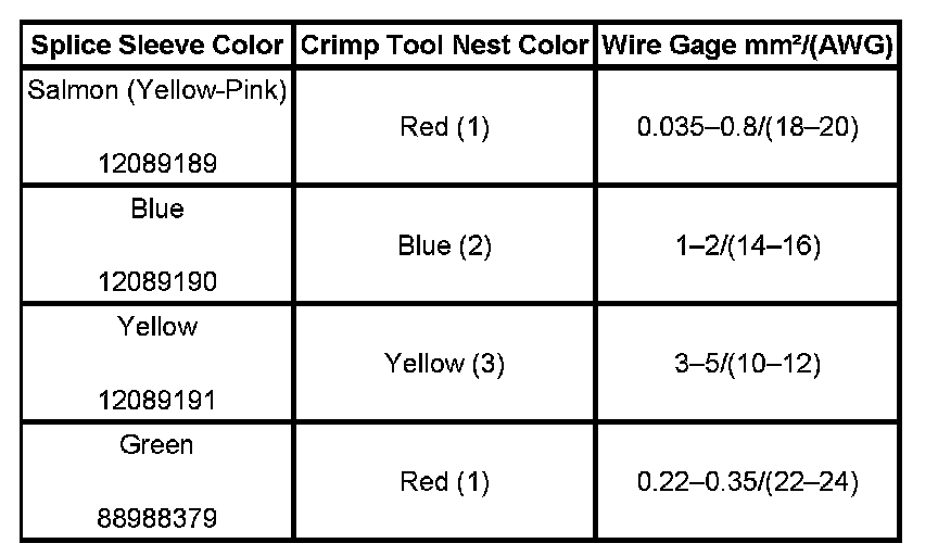 6. Select the proper DuraSeal splice sleeve according to the wire size. Refer to the table at the beginning of the repair procedure for the color coding of the DuraSeal splice sleeves and the crimp tool nests.