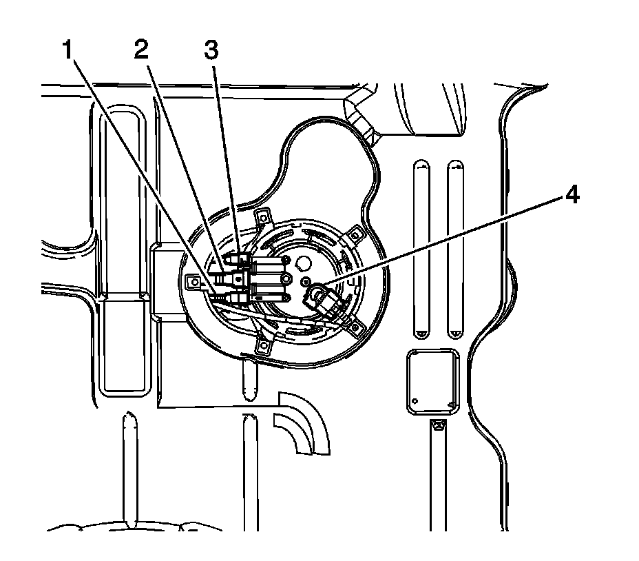 7. Disconnect the fuel level sensor wiring harness electrical connectors (4) from the sender.