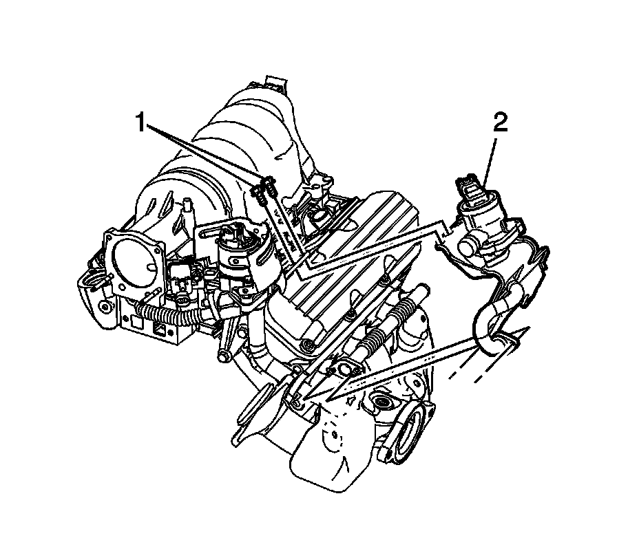 8. Remove the AIR feed tube bracket nut (2) from the throttle body stud.