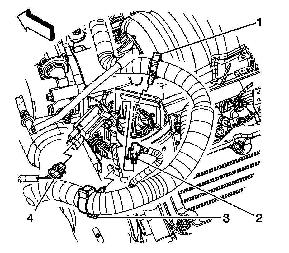 2. Disconnect the engine harness electrical connector (4) from the evaporative emission (EVAP) canister purge solenoid valve.