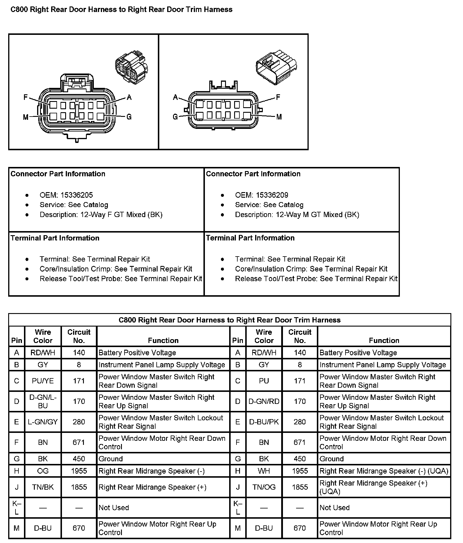 C800 Right Rear Door Harness To Right Rear Door Trim Harness: