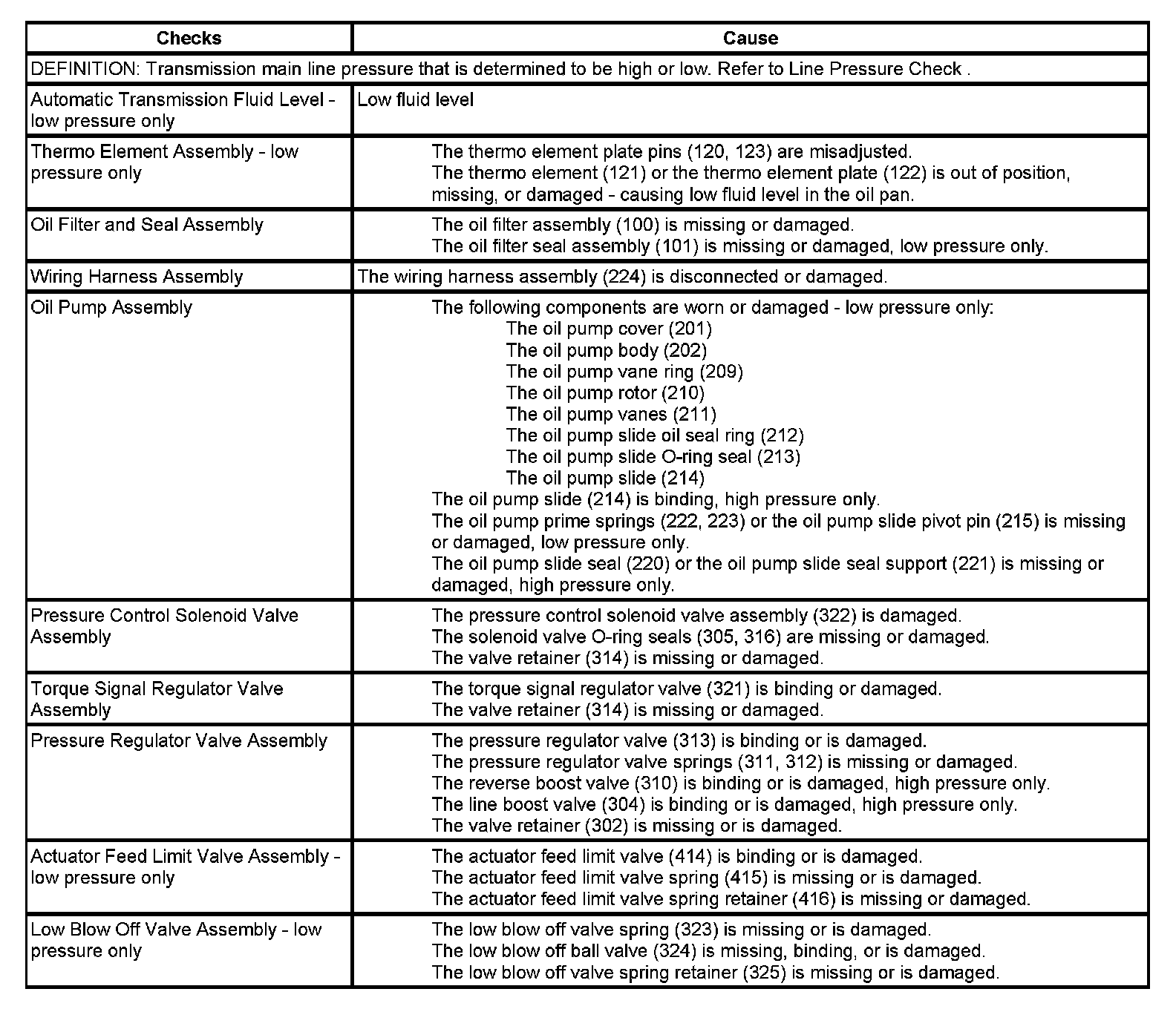 Incorrect Line Pressure: