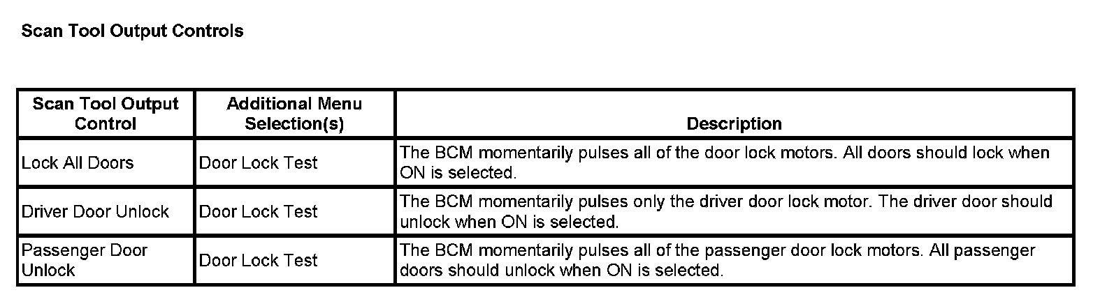 Scan Tool Output Controls: