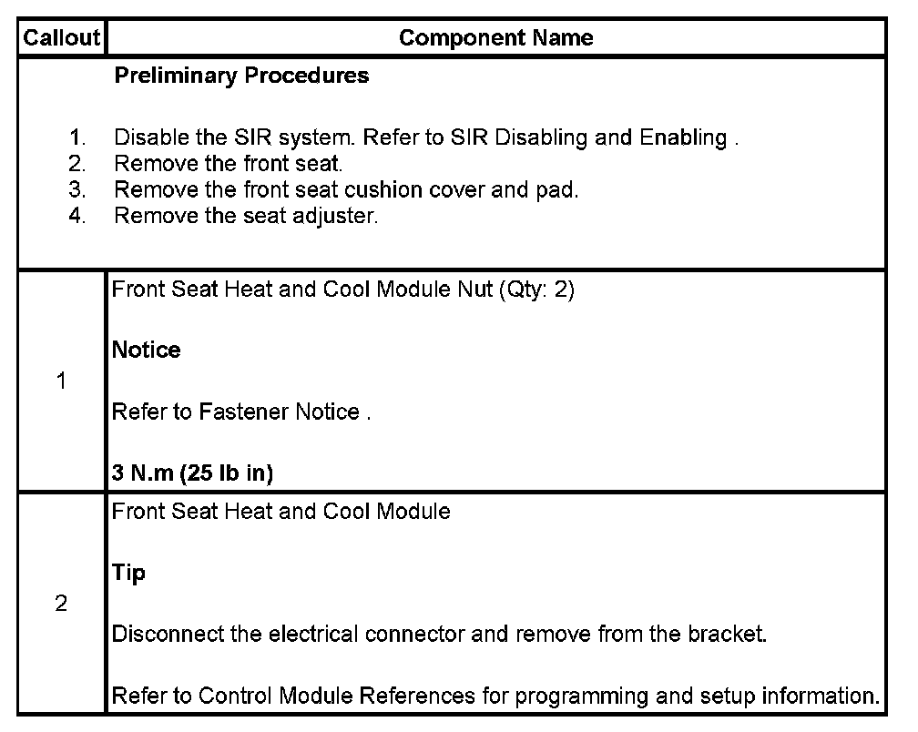MODULE REPLACEMENT - SEAT CLIMATE CONTROL - FRONT SEAT