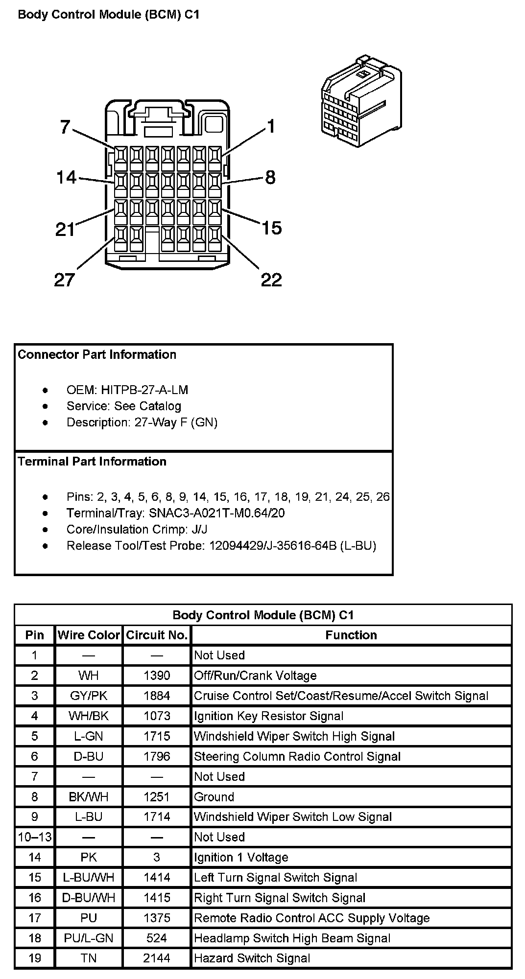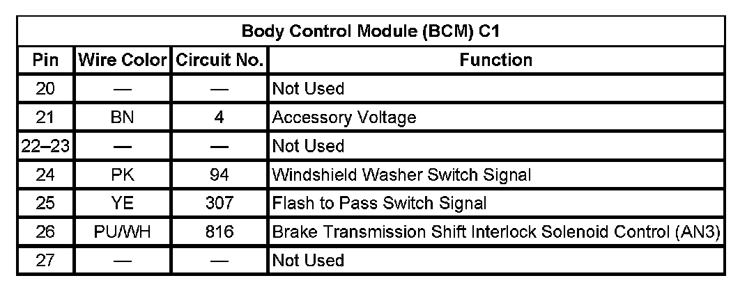 Body Control Module (BCM) C1 (Pin 20 To 27):