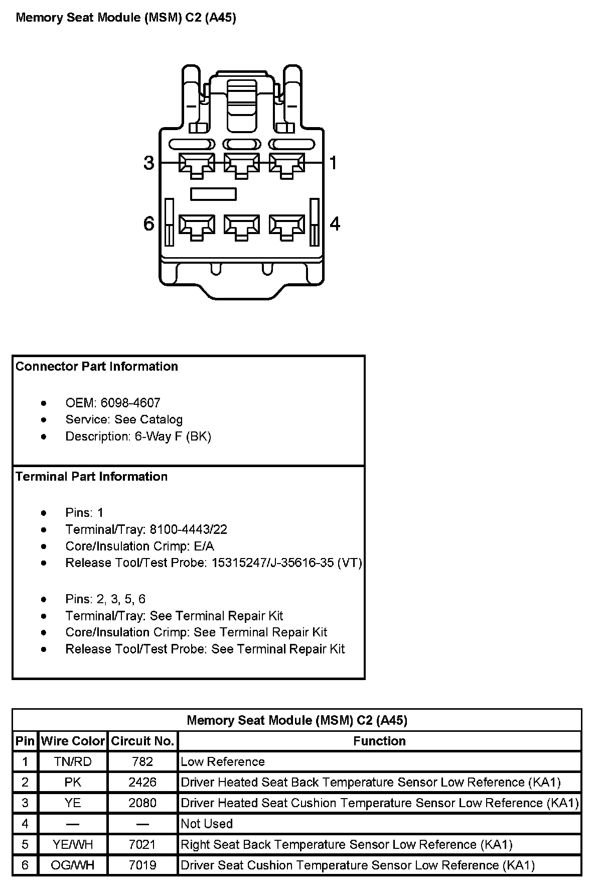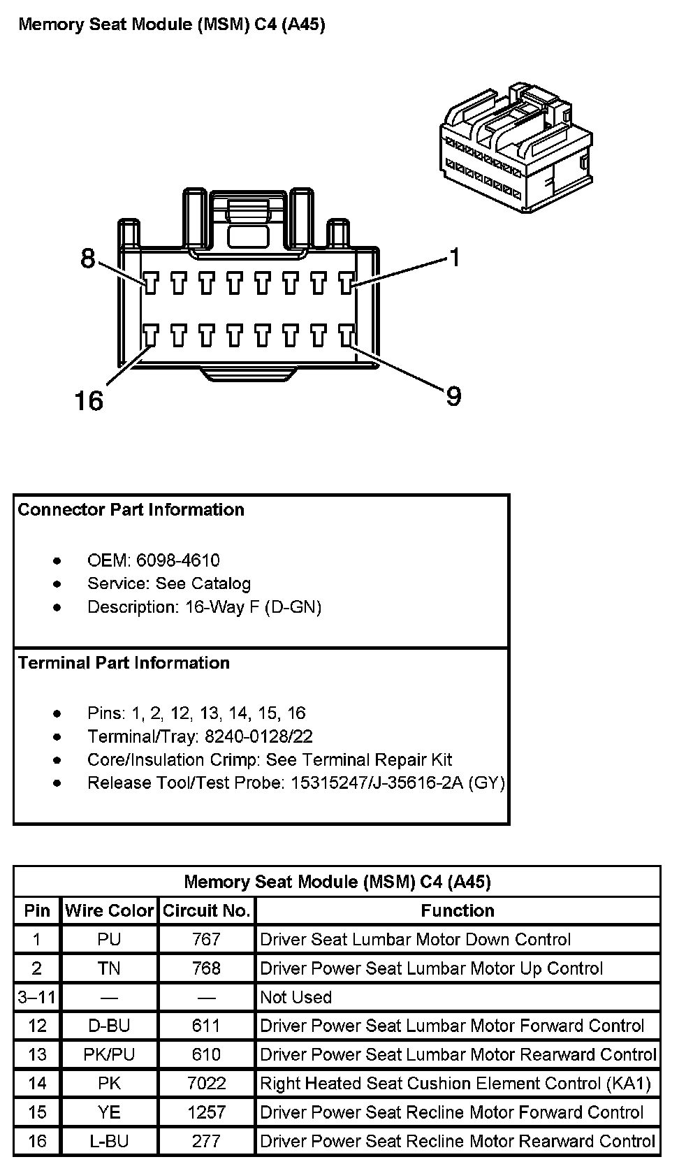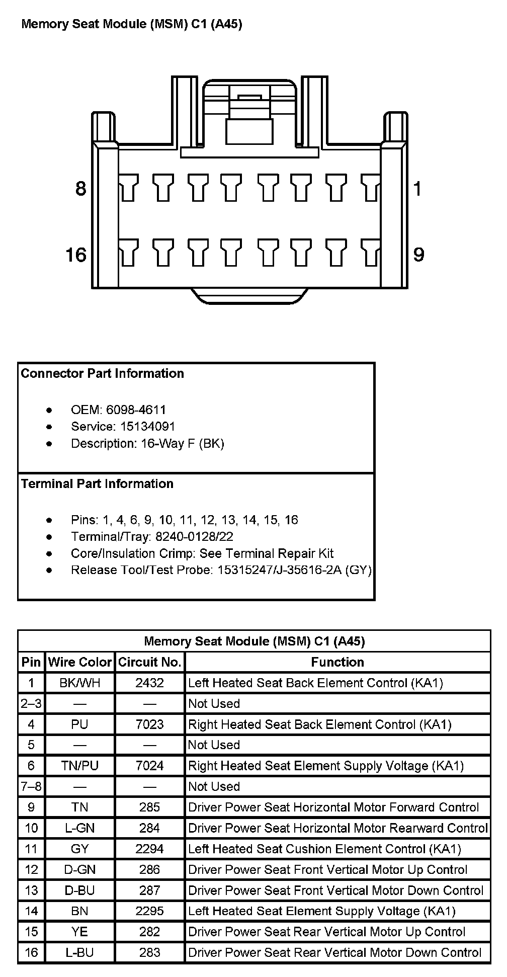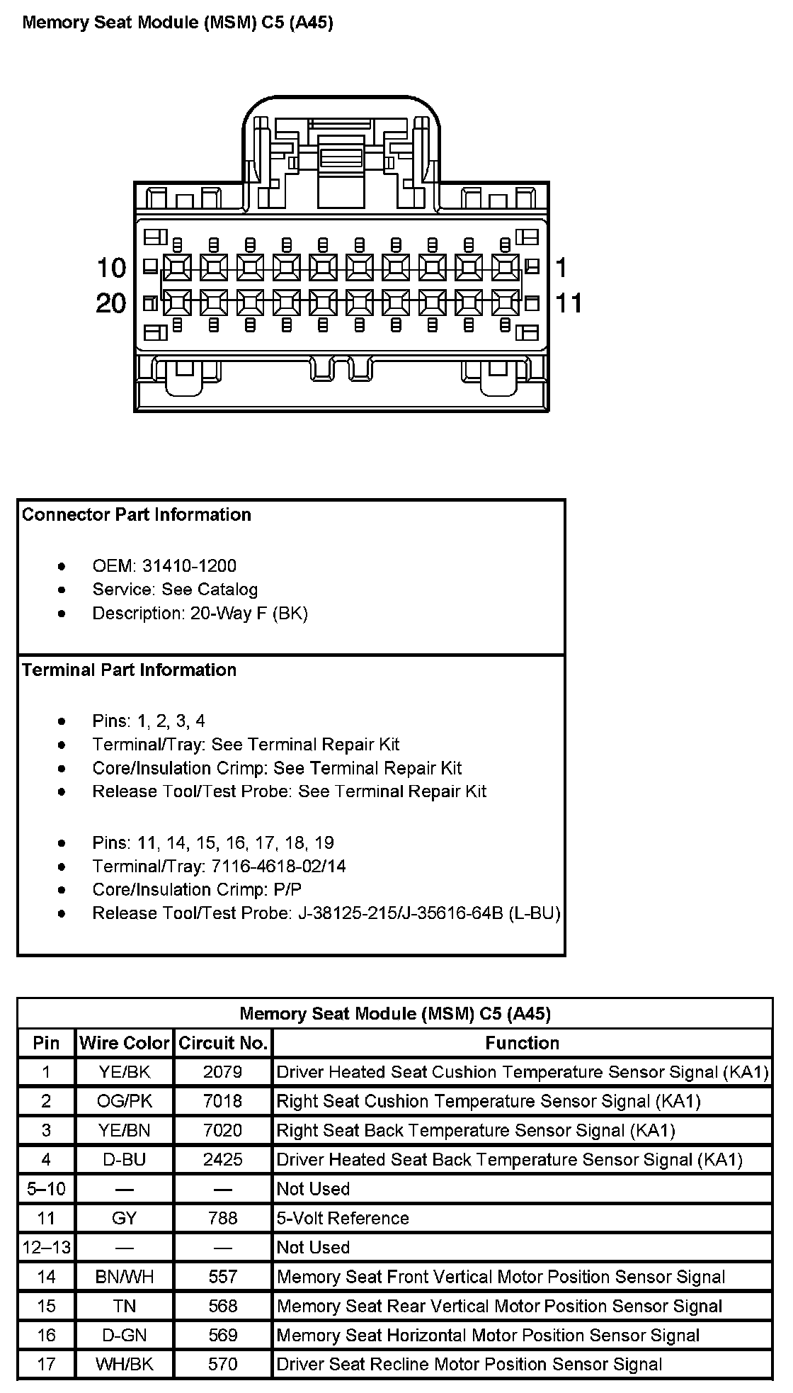 Memory Seat Module (MSM) C5 (With RPO Code A45) (Pin 1 To 17):