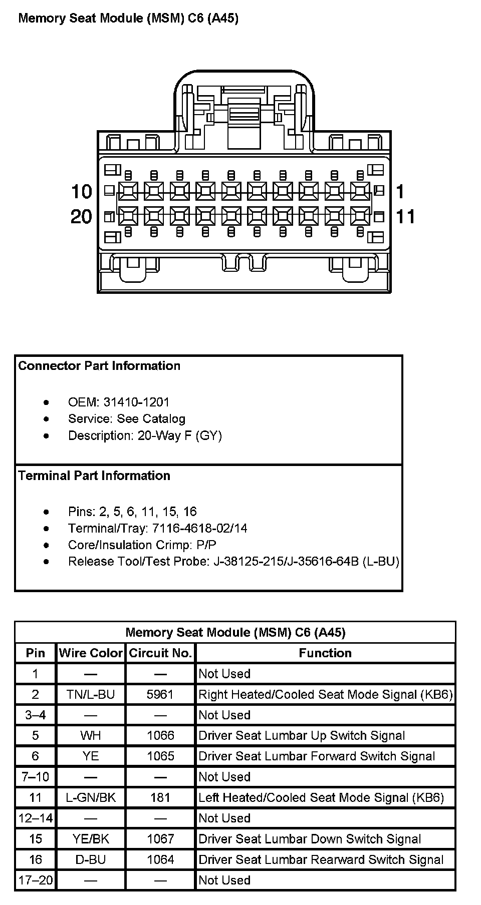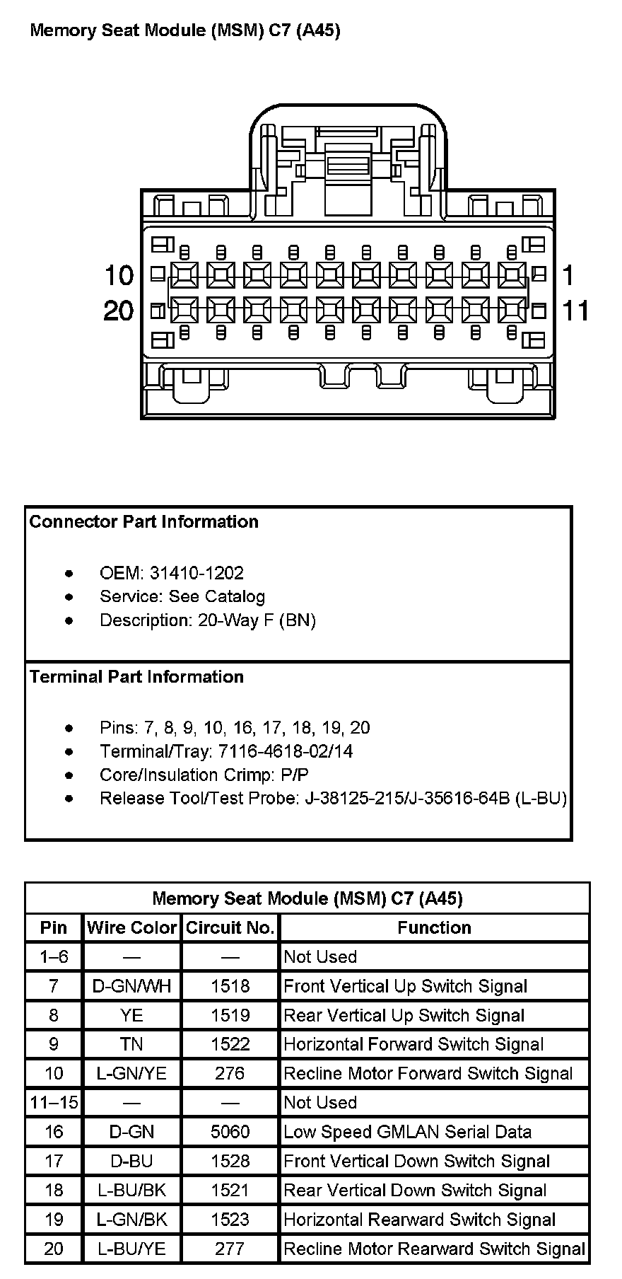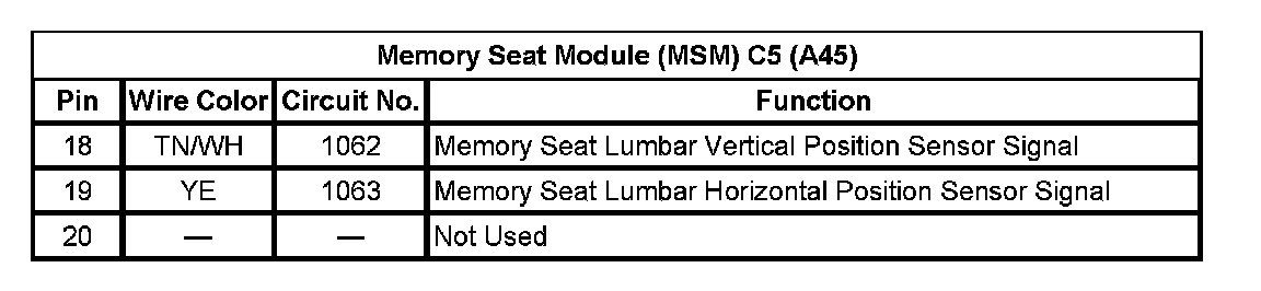 Memory Seat Module (MSM) C5 (With RPO Code A45) (Pin 18 To 20):
