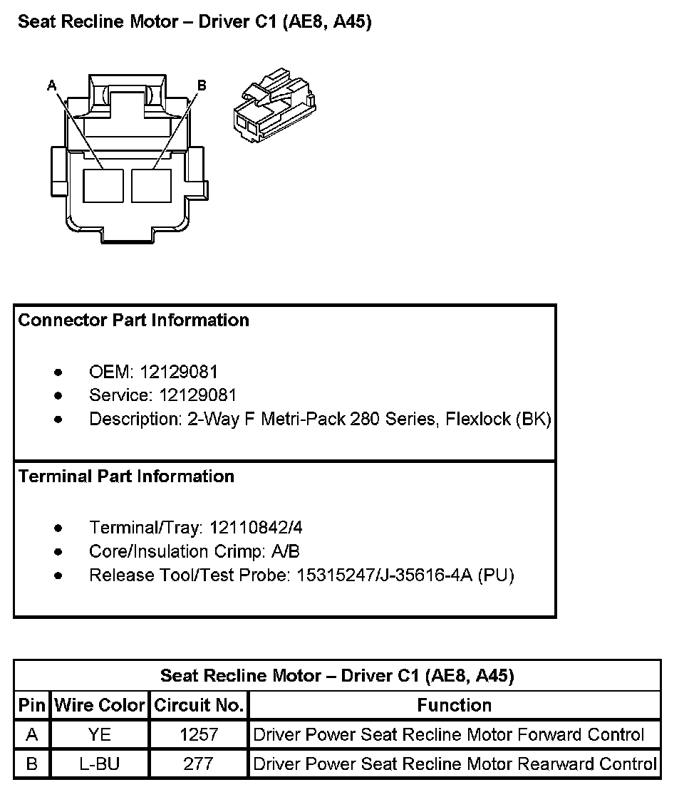 Seat Recline Motor - Driver C1 (With RPO Codes AE8, A45):